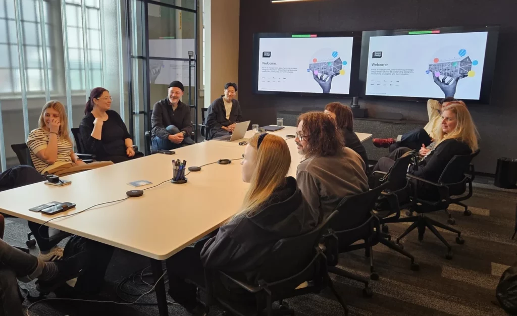 Hea ülevaate tänapäevasest disainitööst rahvusvahelises kontekstis andis DE-YANi külastus. Põnevust pakkus nende globaalne koostöömudel: tiimiliikmed toimivad erinevates ajavööndites ning projektid liiguvad tööpäeva lõpus ühest kontorist järgmisse. Näiteks alustatakse New Yorgis ja kui sealne päev lõpeb, võtab töö üle kolleeg Euroopas või mujal. Selline ajavööndipõhine edasiandmine võimaldab kiirendada protsesse ning hoida projekte pidevas liikumises. “See oli põnev näide sellest, kuidas globaalne meeskond saab praktiliselt ja sujuvalt toimida,” toob välja Kristi Laanemäe Eesti Disainikeskusest.